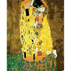 Картина за номерами Strateg ПРЕМІУМ Густав Клімт Поцілунок з лаком та з рівнем розміром 30х40 см (SS1001)