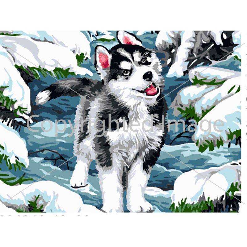 Картина за номерами Strateg ПРЕМІУМ Хаски розміром 30х40 см (SS6842)
