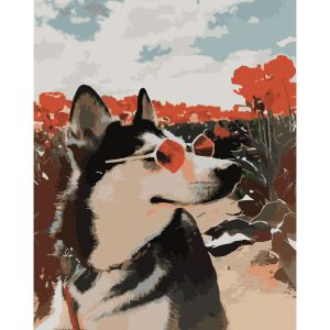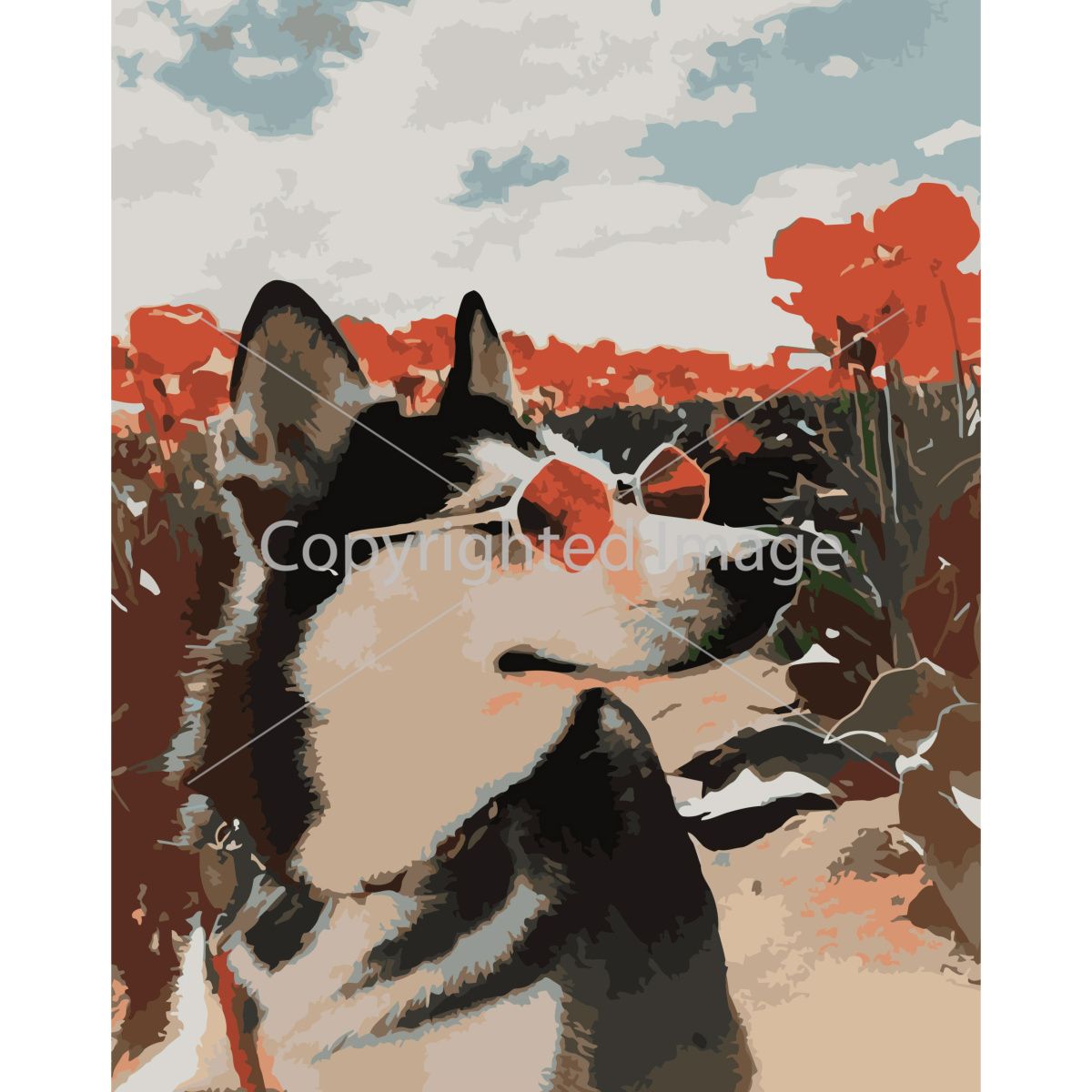 Картина за номерами Strateg ПРЕМІУМ Хаскі влітку з лаком розміром 40х50 см (SY6830)