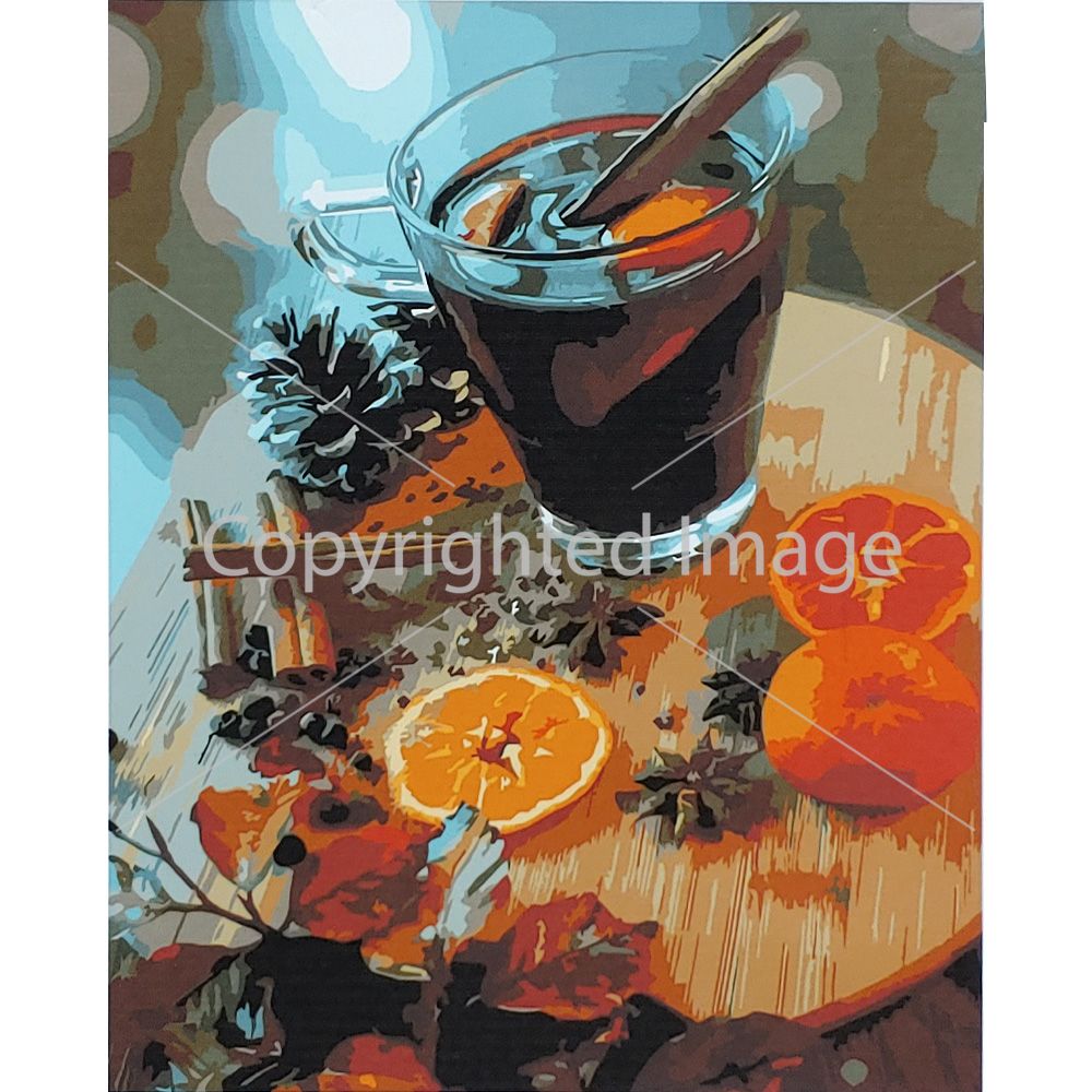 Картина за номерами Strateg ПРЕМІУМ Хвойний глінтвейн з лаком розміром 40х50 см (SY6861)