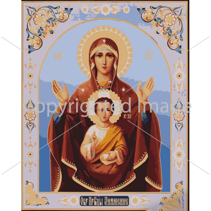 Картина за номерами Strateg ПРЕМІУМ Ікона Божої Матері Знамення з лаком розміром 40х50 см (GS1117)
