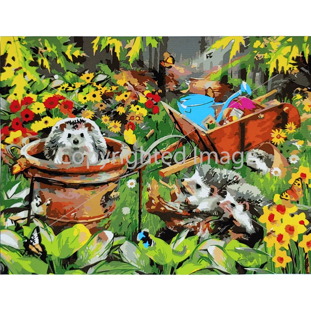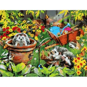 Картина за номерами Strateg ПРЕМІУМ Їжачки в саду з лаком розміром 40х50 см (SY6713)