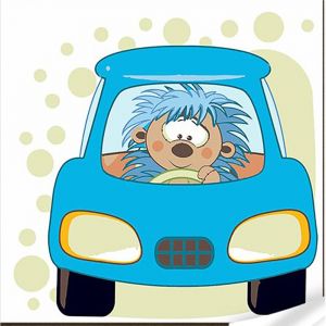 Картина за номерами Strateg ПРЕМІУМ Їжачок на машинці з лаком та з рівнем розміром 30х30 см (ES-0864)