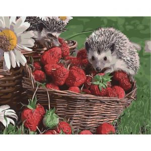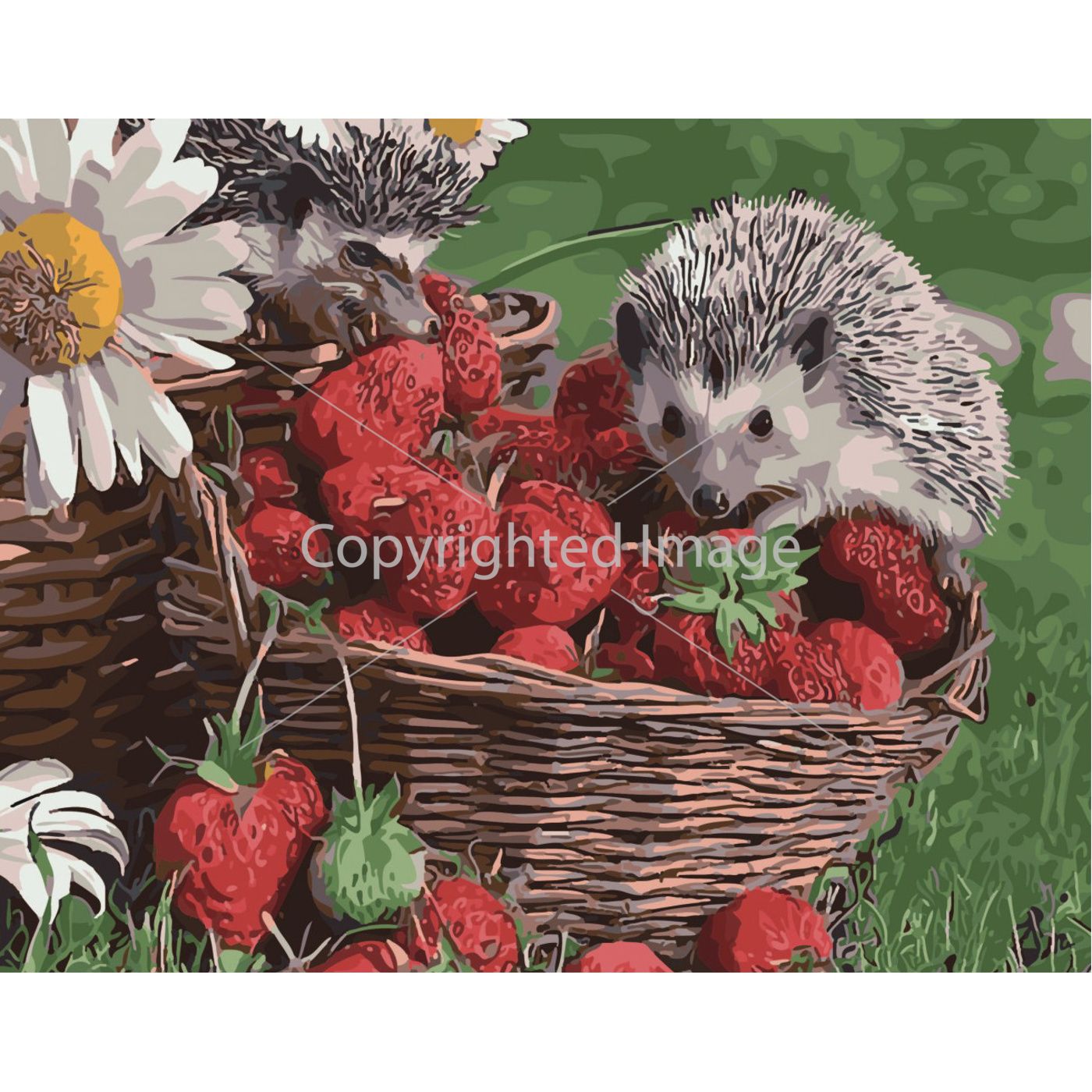Картина за номерами Strateg ПРЕМІУМ Їжачок з полуницею з лаком розміром 40х50 см SY6441