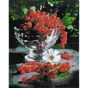 Картина за номерами Strateg ПРЕМІУМ Калинова ваза з лаком розміром 40х50 см (SY6854)