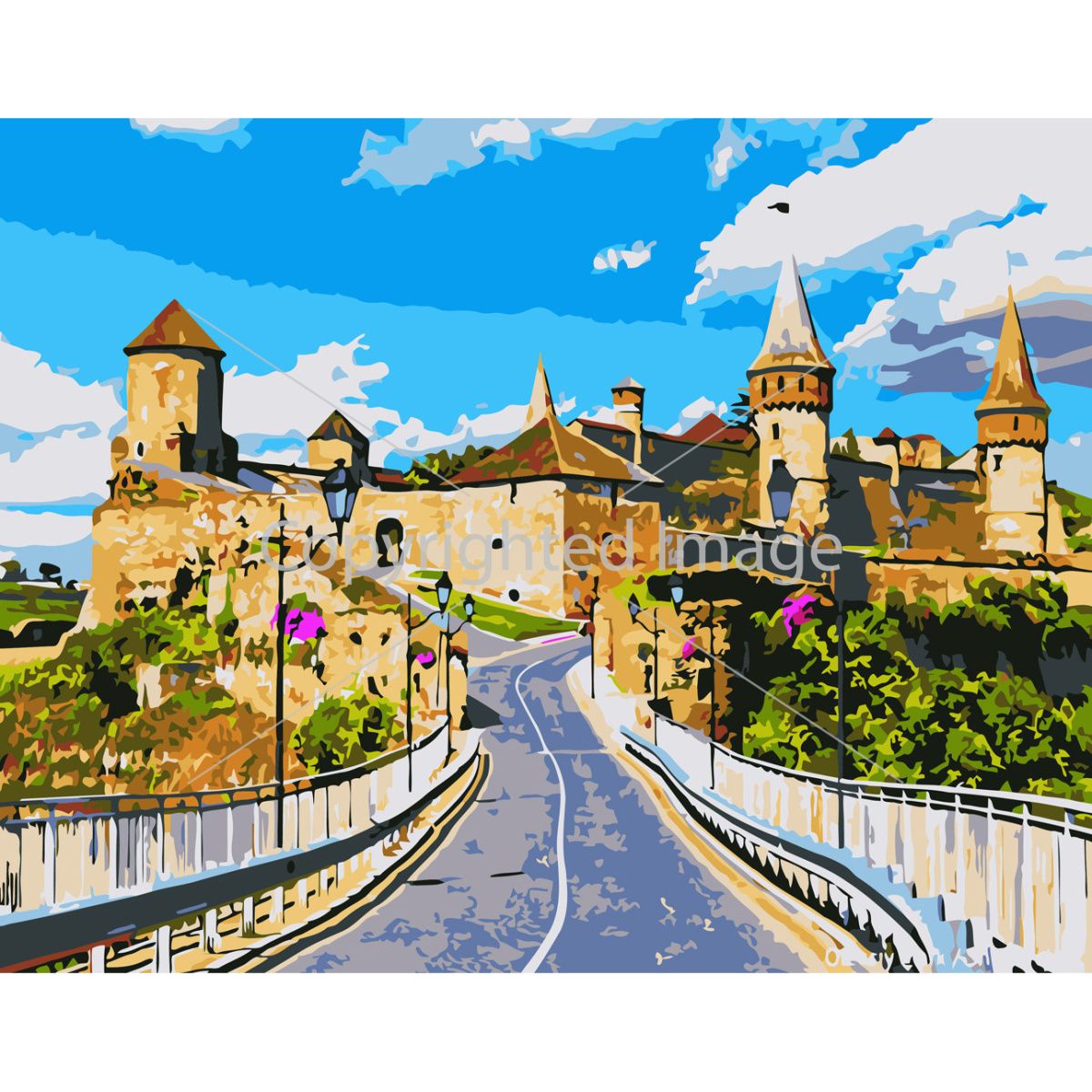 Картина за номерами Strateg ПРЕМІУМ Каменець-Подільський замок з лаком розміром 30х40 см (SS-6587)