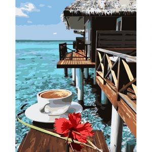 Картина за номерами Strateg ПРЕМІУМ Кава на Мальдівах з лаком та з рівнем розміром 40х50 см (GS1499)