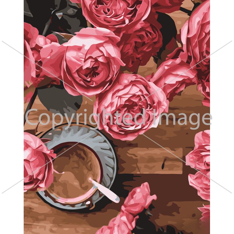 Картина за номерами Strateg ПРЕМІУМ Кава та піони розміром 40х50 см (GS1221)