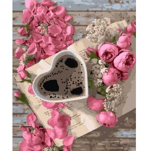 Картина за номерами Strateg ПРЕМІУМ Кава у трояндах розміром 40х50 см (HH006)