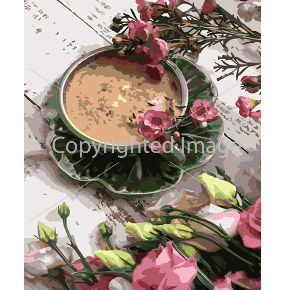 Картина за номерами Strateg ПРЕМІУМ Кава з еустомами розміром 40х50 см (HH019)