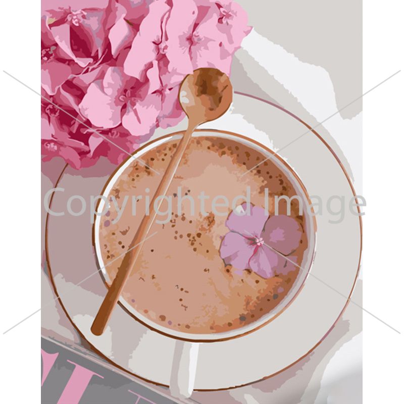 Картина за номерами Strateg ПРЕМІУМ Кава з гортензією розміром 40х50 см (GS883)