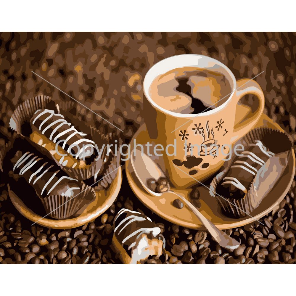 Картина за номерами Strateg ПРЕМІУМ Кава з солодощами розміром 40х50 см (DY281)