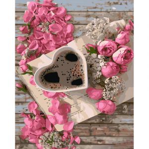 Картина за номерами Strateg ПРЕМІУМ Кава з трояндами розміром 40х50 см (GS978)