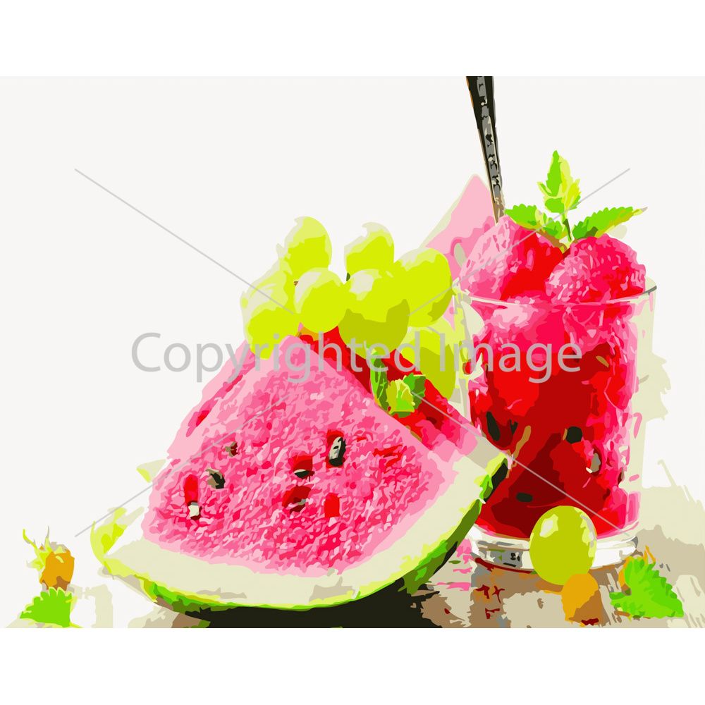 Картина за номерами Strateg ПРЕМІУМ Кавун та виноград розміром 40х50 см (GS462)