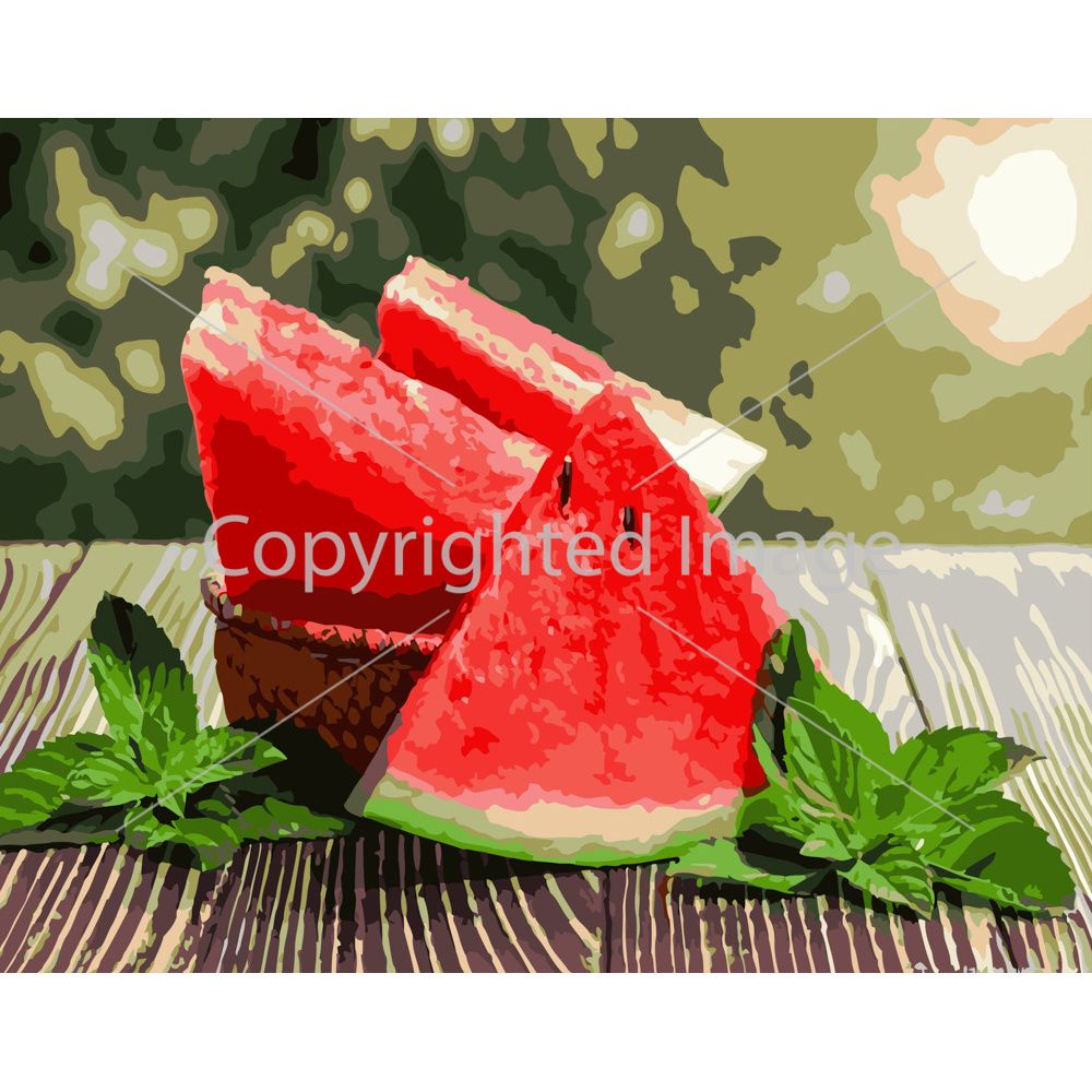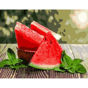 Картина за номерами Strateg ПРЕМІУМ Кавун з м'ятою розміром 40х50 см (GS498)