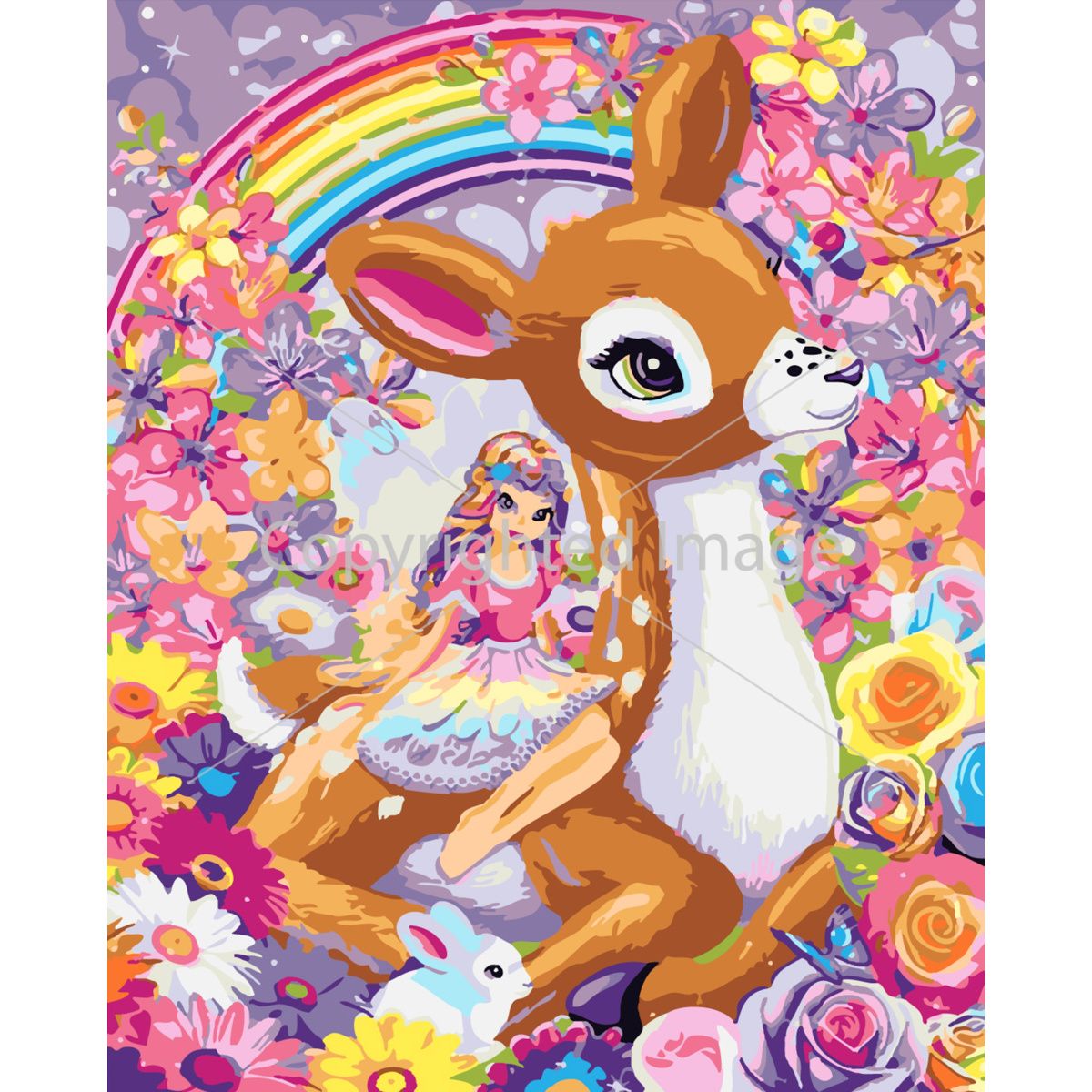 Картина за номерами Strateg ПРЕМІУМ Казкова фея разом з оленем з лаком розміром 30х40 см SS-6432