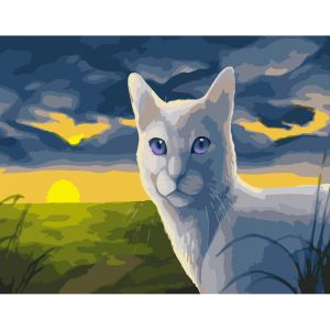 Картина за номерами Strateg ПРЕМІУМ Кіт на фоні пейзажу розміром 40х50 см (GS369)