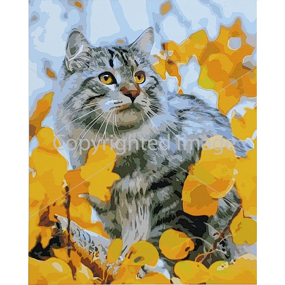 Картина за номерами Strateg ПРЕМІУМ Кіт у листі з лаком розміром 40х50 см (SY6812)