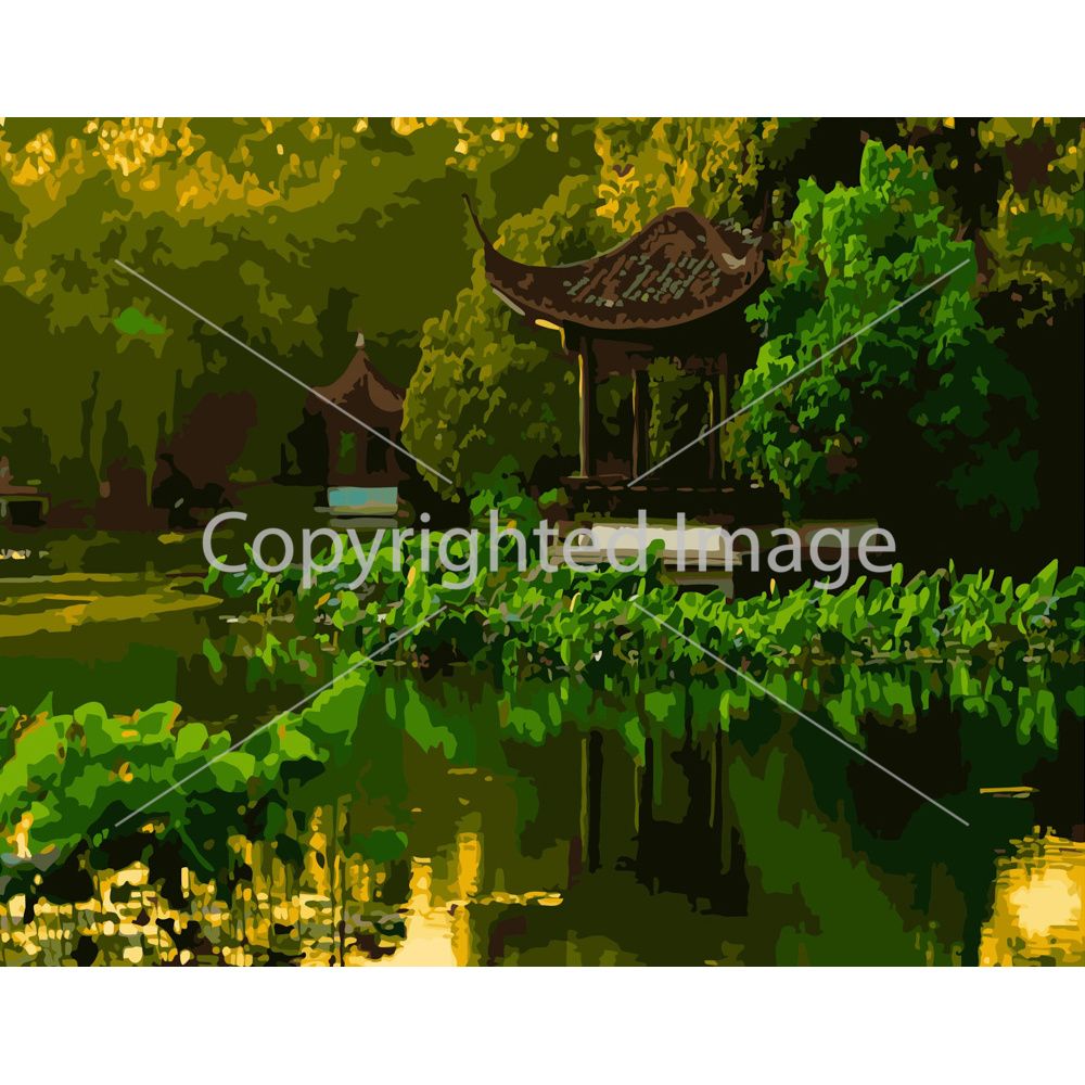Картина за номерами Strateg ПРЕМІУМ Китайська гавань розміром 40х50 см (GS486)