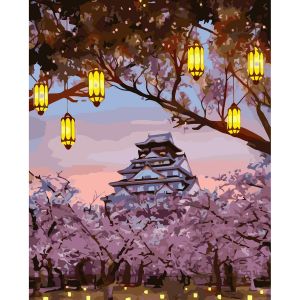 Картина за номерами Strateg ПРЕМІУМ Китайські ліхтарики з лаком розміром 40х50 см VA-3584