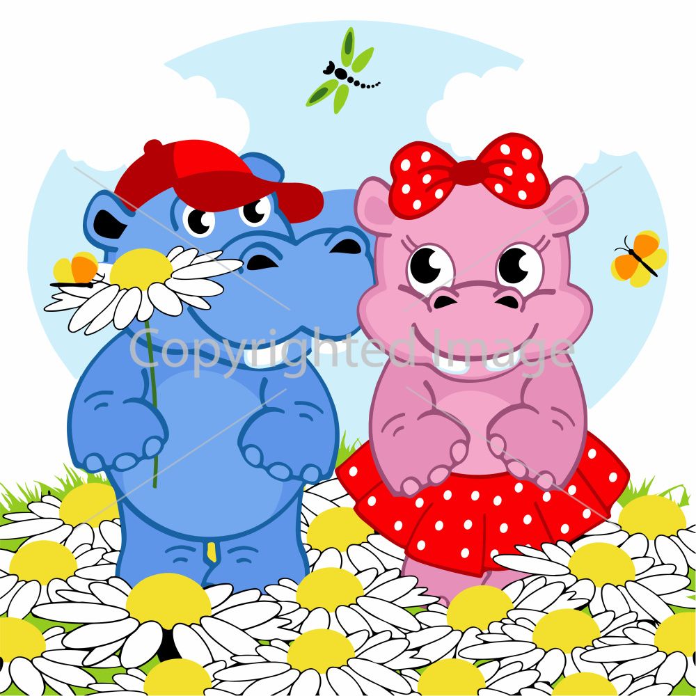 Картина за номерами Strateg ПРЕМІУМ Кохання бегемотів з лаком та з рівнем розміром 30х30 см (ES-0807)