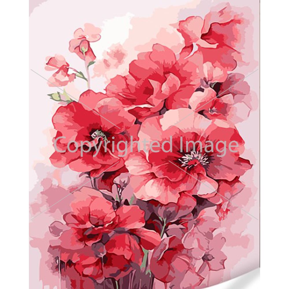 Картина за номерами Strateg ПРЕМІУМ Колаж із рожевих квітів з лаком та з рівнем розміром 40х50 (GS1600)