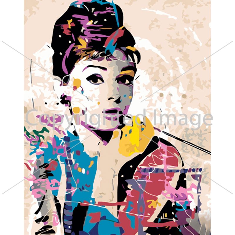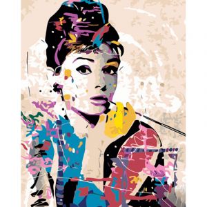 Картина за номерами Strateg ПРЕМІУМ Кольорова Одрі Хепберн з лаком розміром 40х50 см (GS1077)