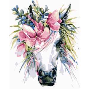 Картина за номерами Strateg ПРЕМІУМ Кольоровий кінь з лаком розміром 40х50 см VA-1218