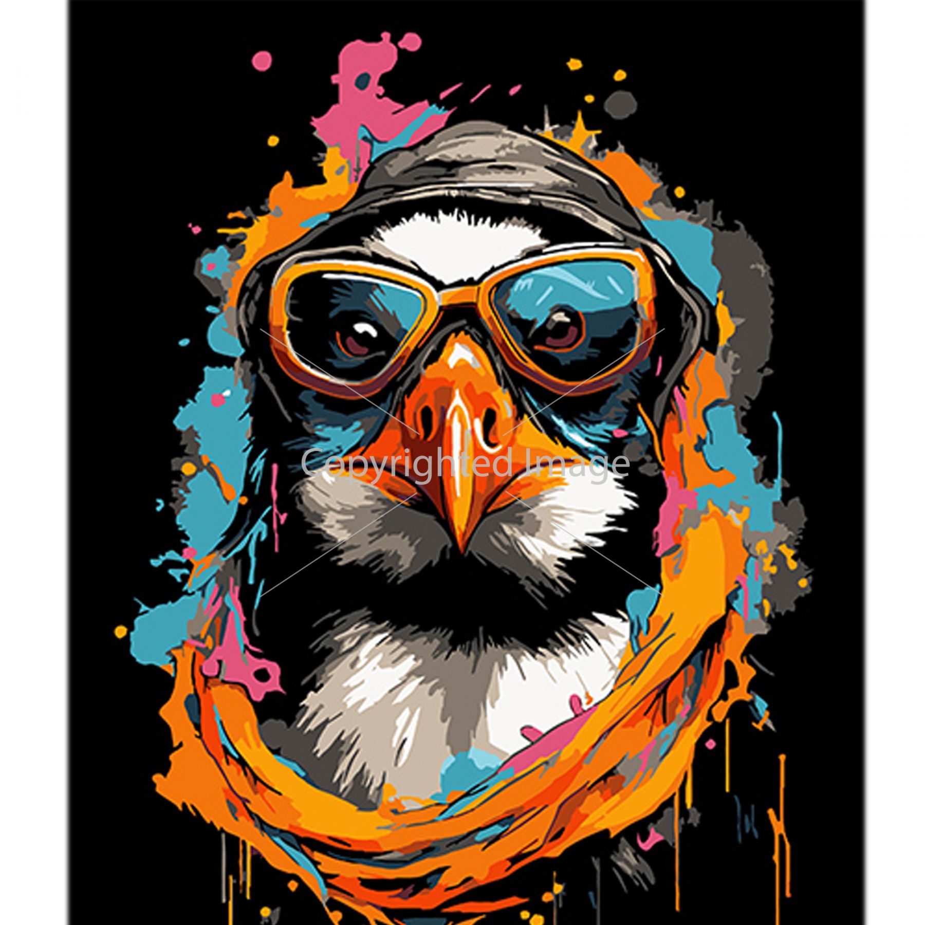 Картина за номерами Strateg ПРЕМІУМ Кольоровий пінгвін на чорному фоні розміром 40х50 см (AH1133)