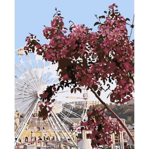 Картина за номерами Strateg ПРЕМІУМ Контрактова площа з лаком розміром 30х40 см (SS-6590)