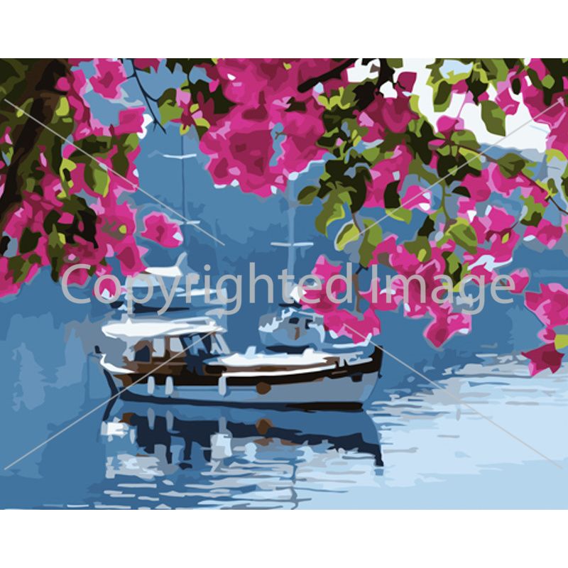 Картина за номерами Strateg ПРЕМІУМ Корабель на воді з лаком розміром 40х50 см (GS1250)