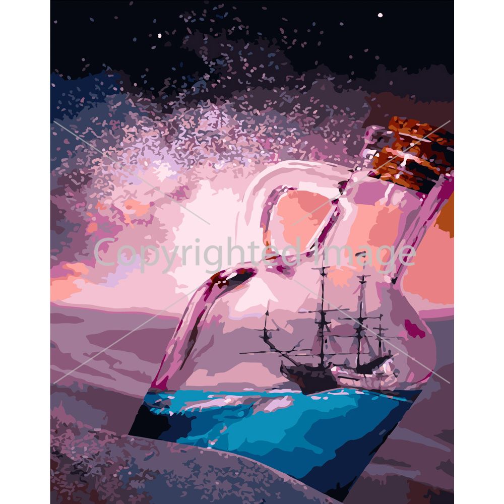Картина за номерами Strateg ПРЕМІУМ Корабель у пляшці розміром 40х50 см (GS197)