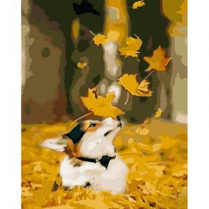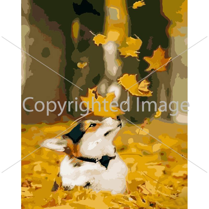 Картина за номерами Strateg ПРЕМІУМ Коргі восени розміром 40х50 см (GS878)