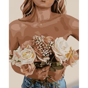 Картина за номерами Strateg ПРЕМІУМ Корсет із квітів розміром 40х50 см (GS837)