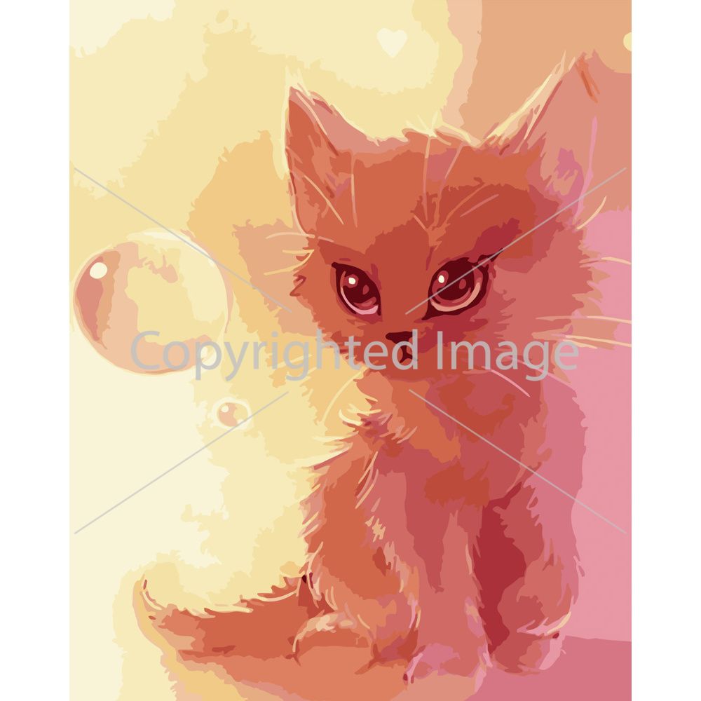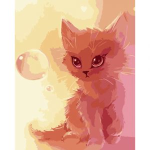 Картина за номерами Strateg ПРЕМІУМ Кошеня з бульбашкою розміром 40х50 см (DY187)