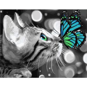 Картина за номерами Strateg ПРЕМІУМ Кошеня з метеликом з лаком розміром 40х50 см SY6186