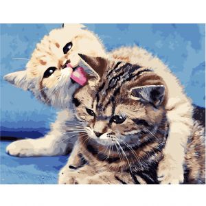Картина за номерами Strateg ПРЕМІУМ Кошенята з лаком розміром 40х50 см VA-1971