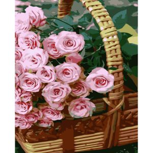 Картина за номерами Strateg ПРЕМІУМ Кошик троянд з лаком розміром 30х40 см (SS-6498)