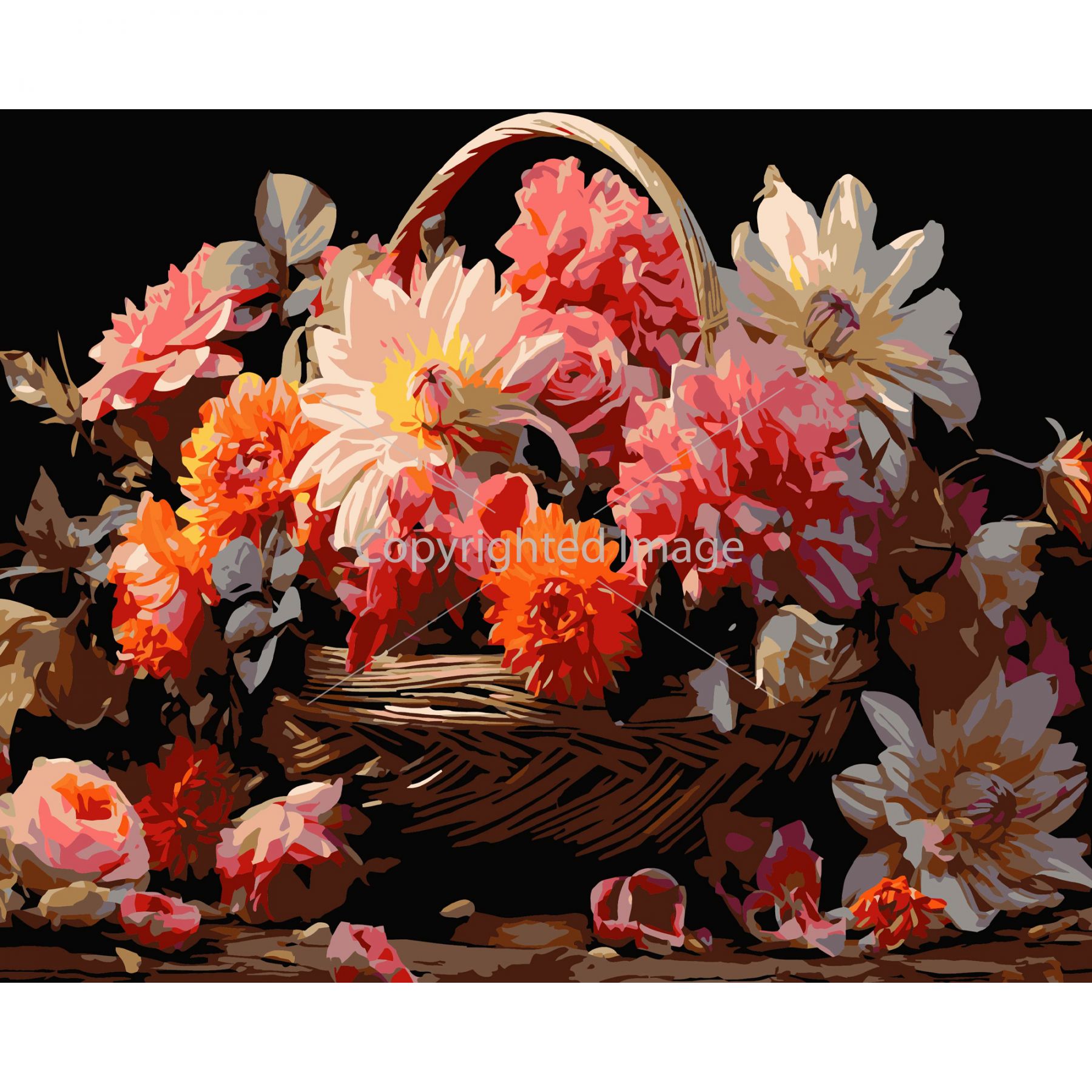 Картина за номерами Strateg ПРЕМІУМ Кошик з квітами на чорному фоні розміром 40х50 см (AH1177-19)