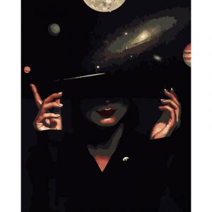 Картина за номерами Strateg ПРЕМІУМ Космічна шляпа розміром 40х50 см (GS734)