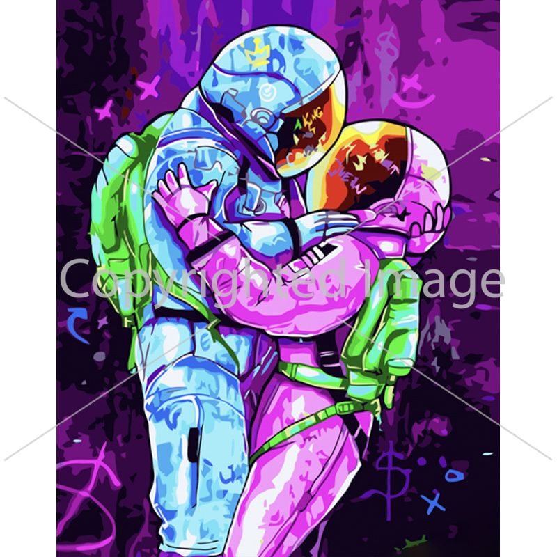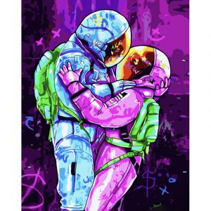 Картина за номерами Strateg ПРЕМІУМ Космічне кохання з лаком розміром 40х50 см (GS1230)