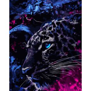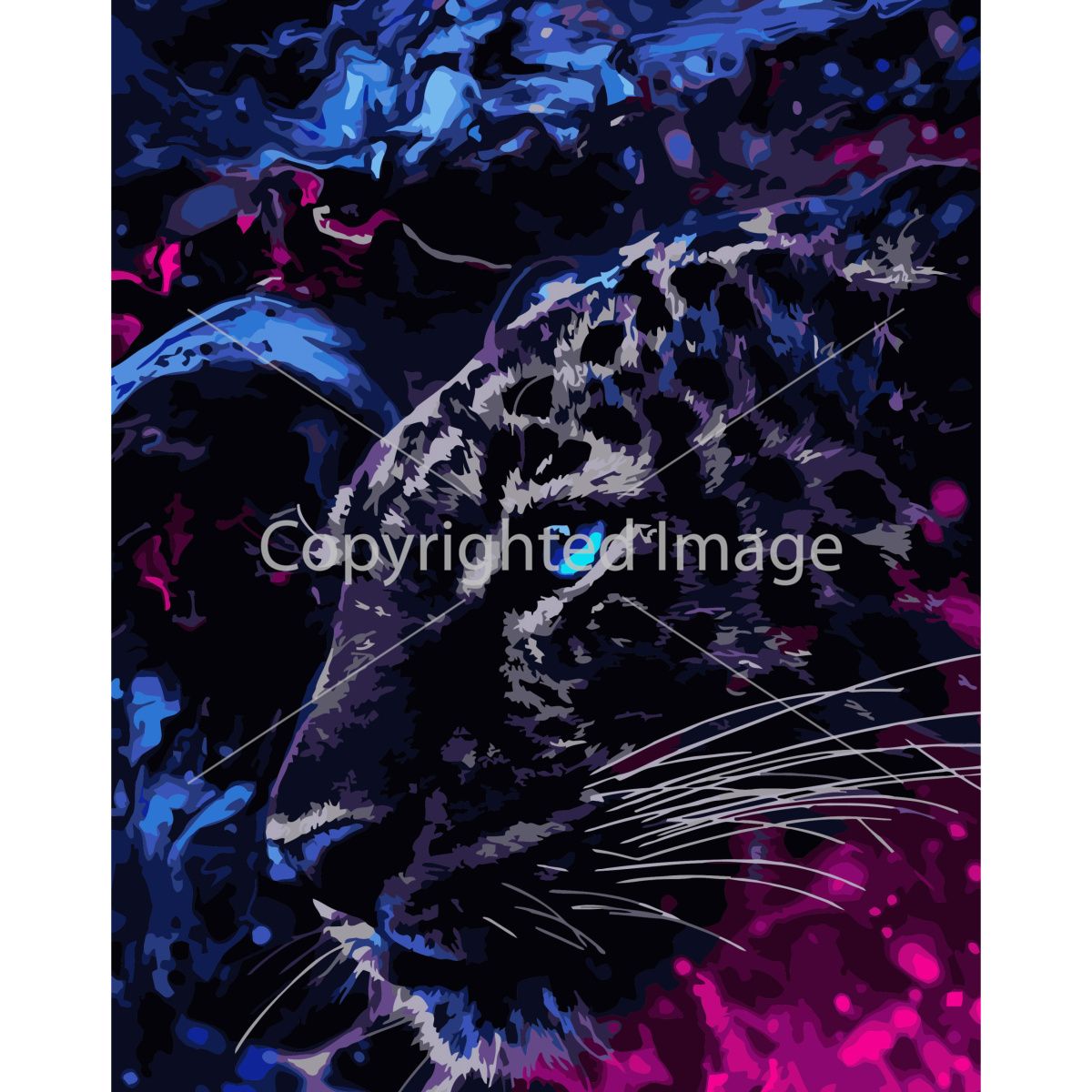 Картина за номерами Strateg ПРЕМІУМ Космічний леопард з лаком розміром 40х50 см (SY6759)