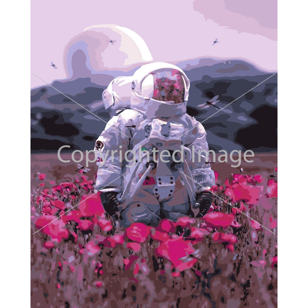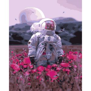 Картина за номерами Strateg ПРЕМІУМ Космонавт серед поля розміром 40х50 см (GS491)