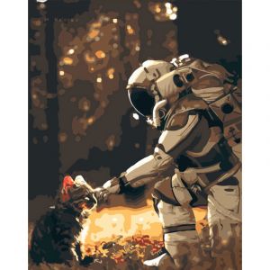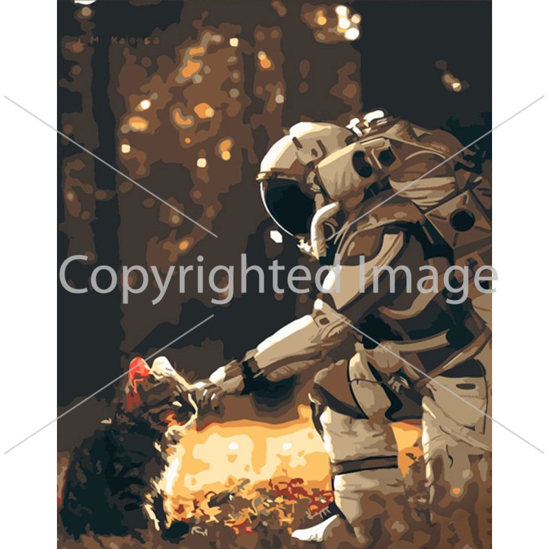 Картина за номерами Strateg ПРЕМІУМ Космонавт з котиком розміром 40х50 см (DY355)