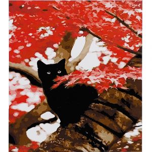 Картина за номерами Strateg ПРЕМІУМ Котик на дереві з лаком розміром 30х40 см (SS-6558)