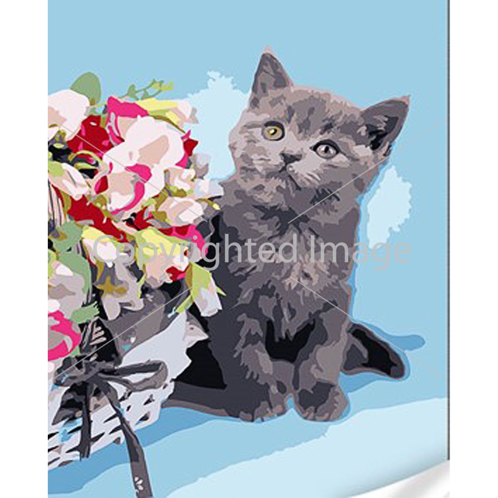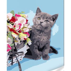 Картина за номерами Strateg ПРЕМІУМ Котик в очікуванні з лаком та з рівнем розміром 30х40 см (SS1075)