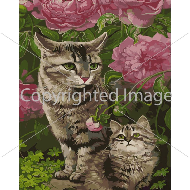 Картина за номерами Strateg ПРЕМІУМ Котики у квітах розміром 40х50 см (GS997)