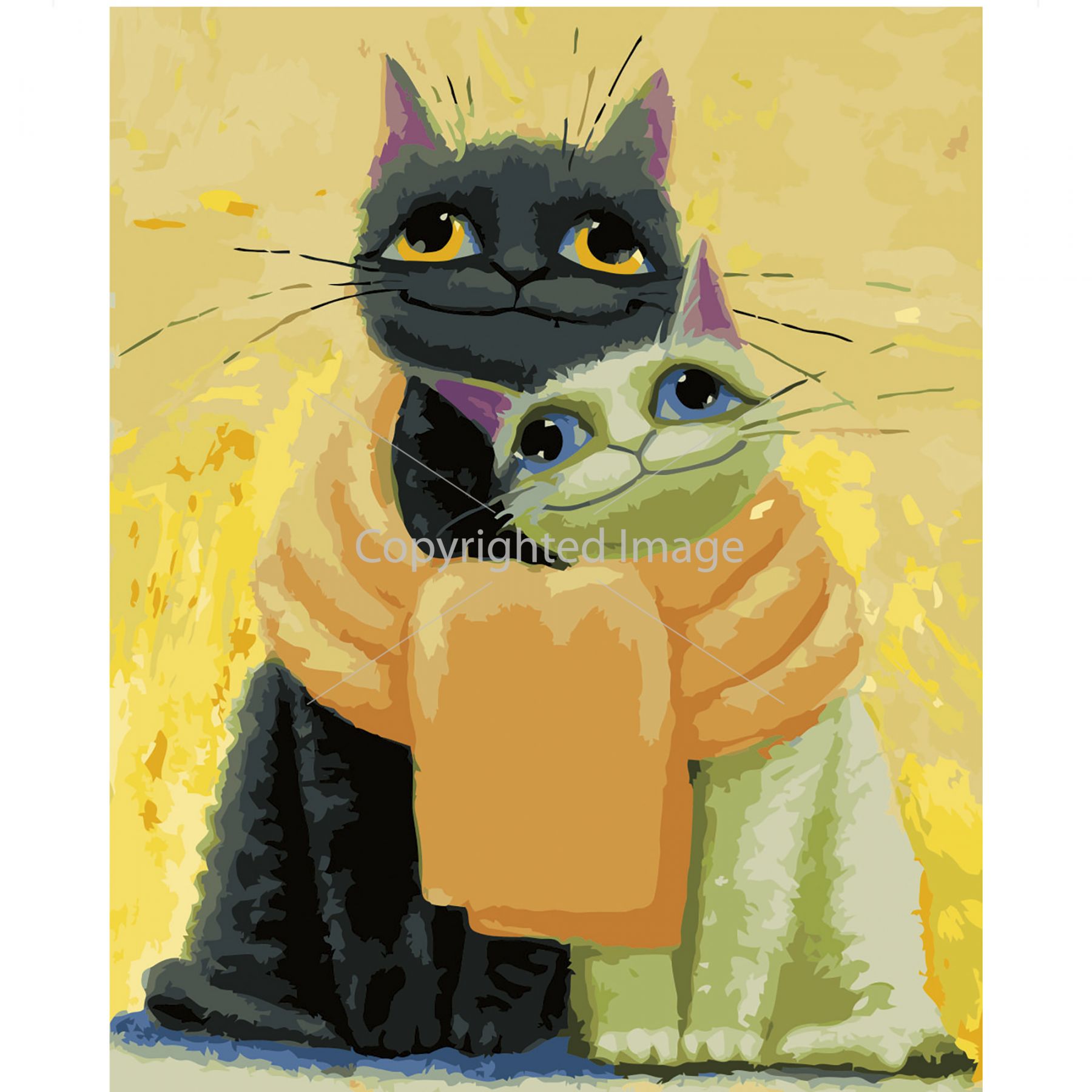Картина за номерами Strateg ПРЕМІУМ Котики замотані шарфом з лаком розміром 40х50 см VA-2669
