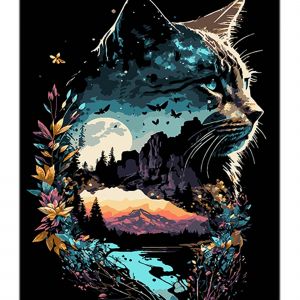 Картина за номерами Strateg ПРЕМІУМ Котяче відображення природи на чорному фоні розміром 40х50 см (AH1129)