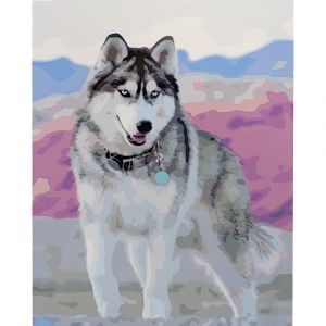 Картина за номерами Strateg ПРЕМІУМ Красунчик хаскі з лаком розміром 40х50 см (SY6716)